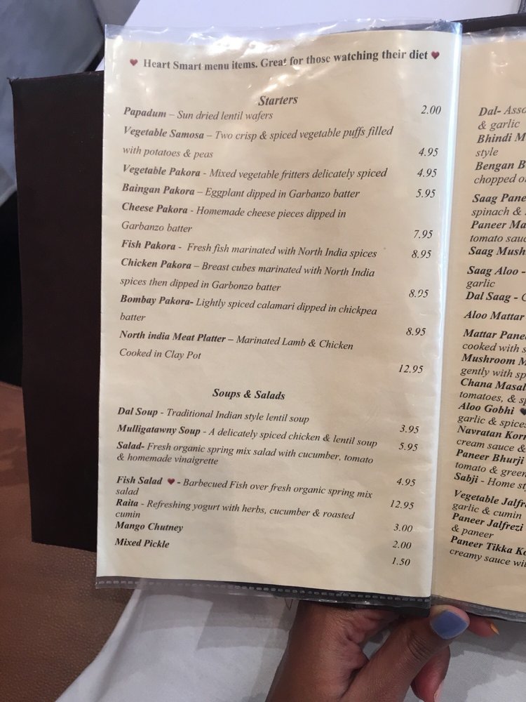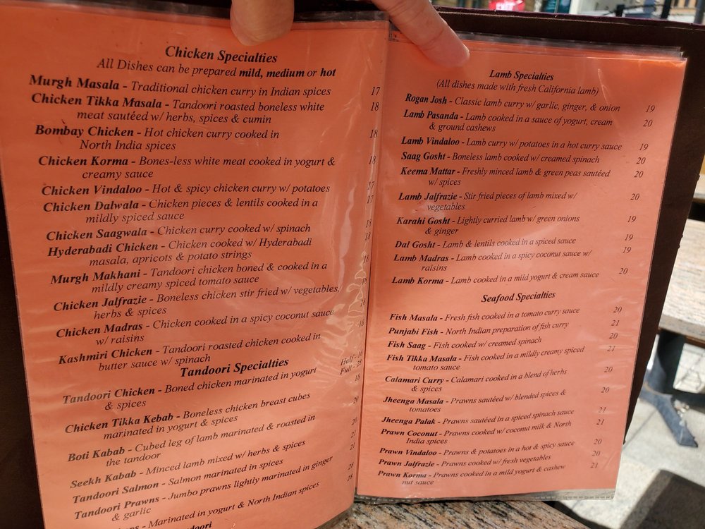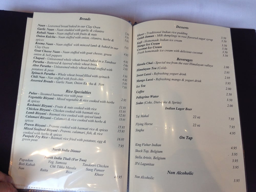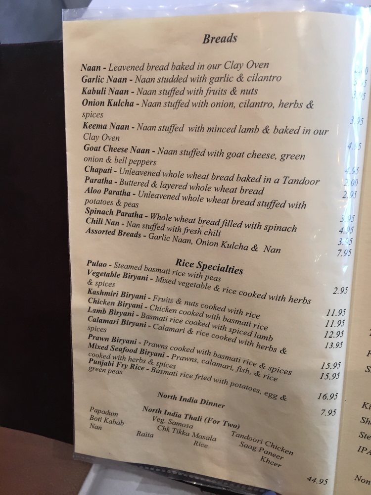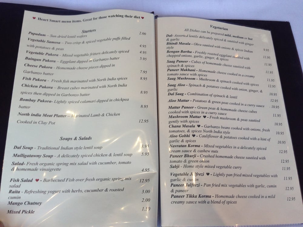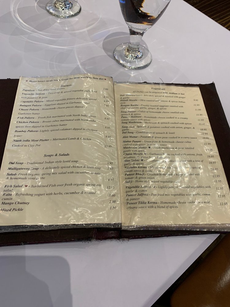 North India Restaurant, located in San Francisco, offers a classy yet casual dining experience with a variety of vegan and limited vegetarian options. The menu features appetizers like Papadum and Vegetable Samosa, as well as family dinner specials like Curry Dinner. The Soups and Salads section includes options like Dal Soup and Cucumber Salad. Customers praise the friendly service and delicious dishes such as rogan josh lamb curry and butter chicken. The ambiance is described as warm and inviting, with outdoor seating available. Overall, North India Restaurant stands out for its authentic North Indian cuisine, attentive staff, and pleasant atmosphere. It's a must-visit for those craving flavorful Indian dishes in the Bay Area.